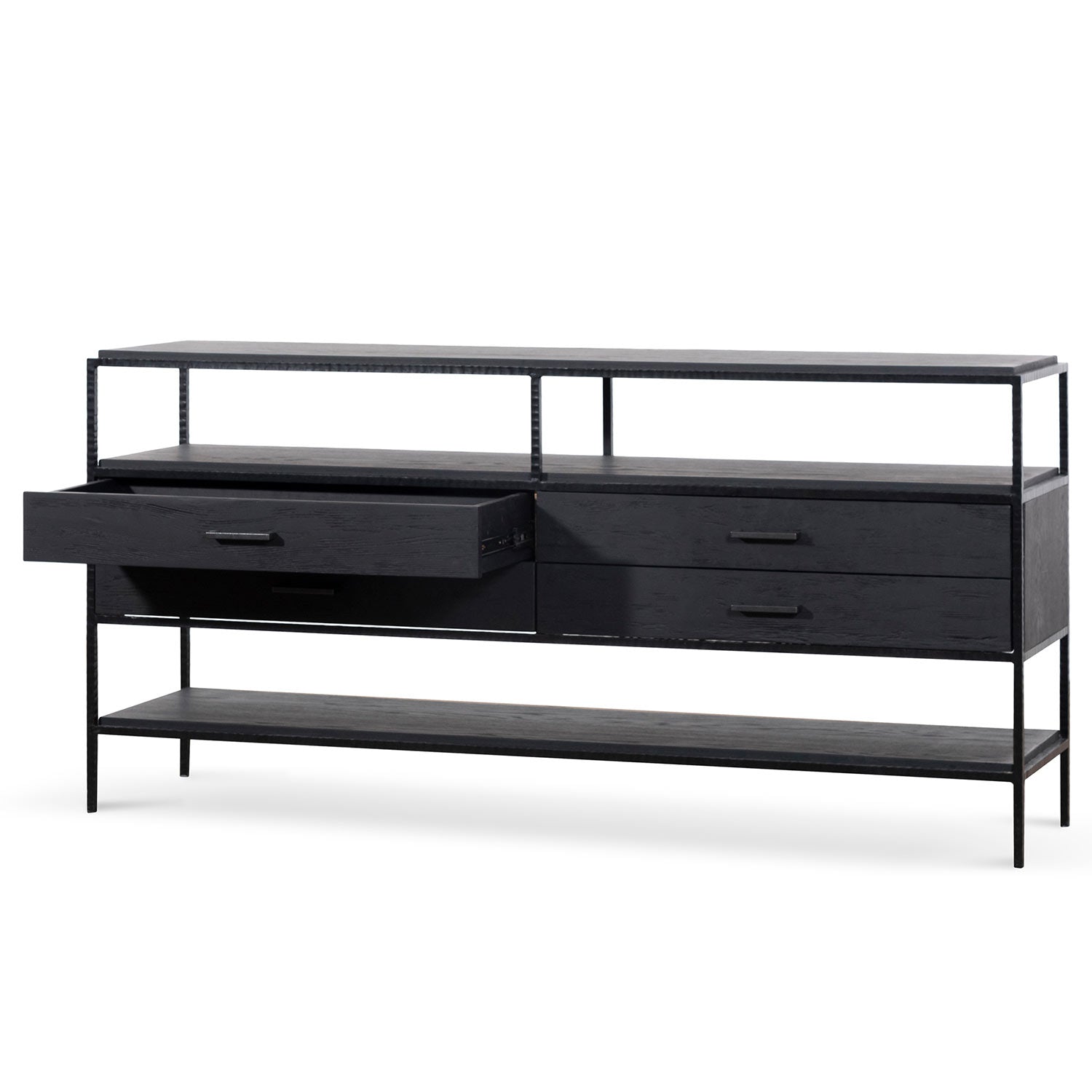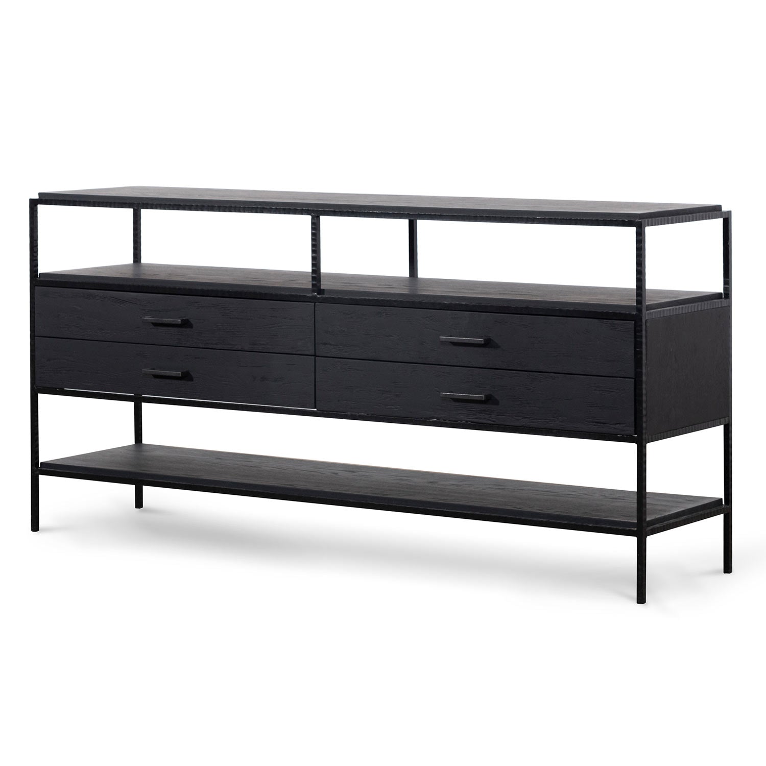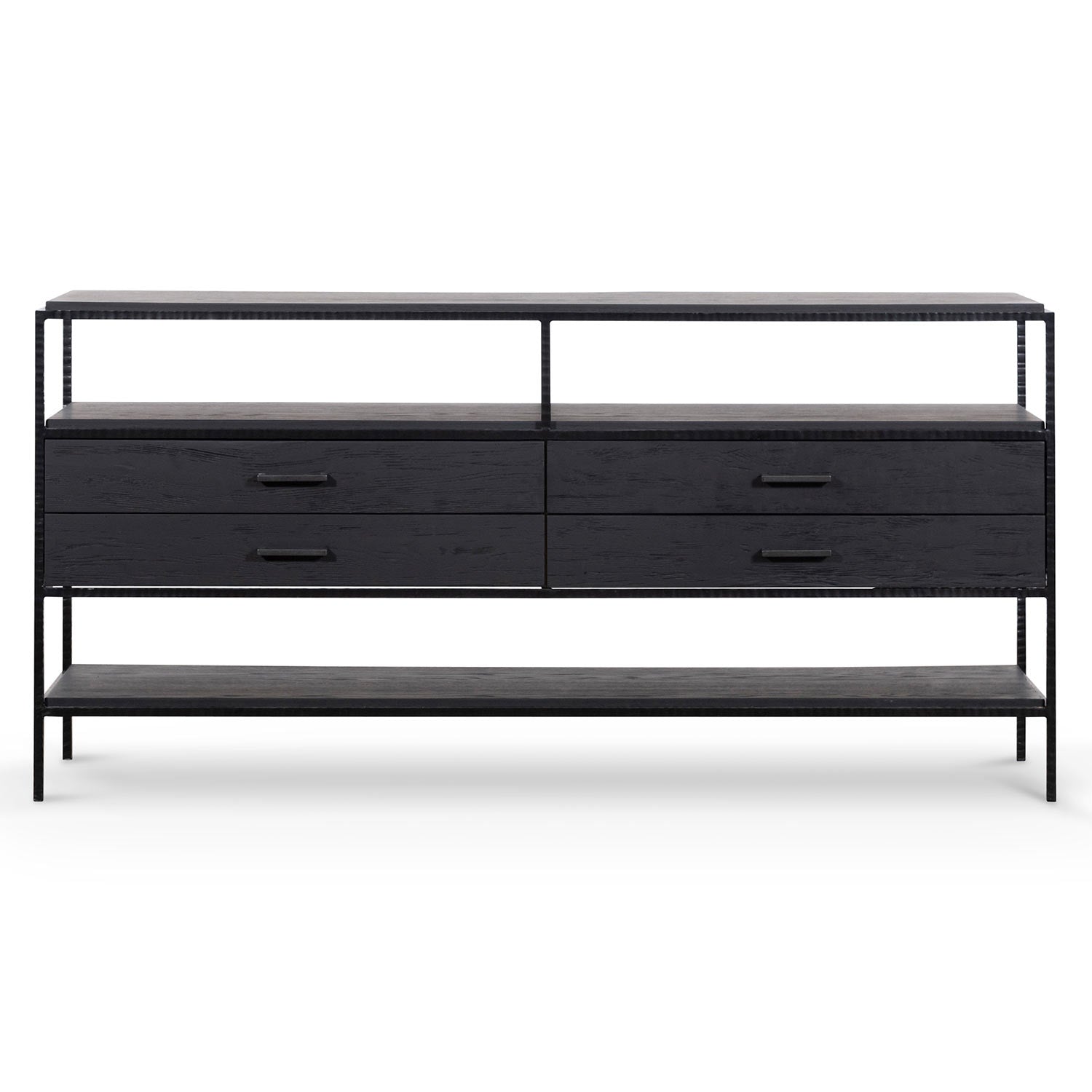 This sleek 1.6m sideboard brings serious style to any room. Crafted from recycled oak with a powder-coated black iron frame, it's built to last while keeping things eco-friendly. Four smooth pull-out drawers plus three open compartments give you heaps of storage flexibility—whether you're stashing away essentials or displaying your favourite pieces. The warm wood top sits perfectly on the industrial frame for that modern contrast everyone's after. Best part? It arrives fully assembled and ready to go.